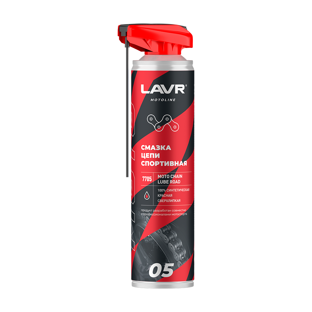 Красная синтетическая смазка нового поколения разработана для цепных приводов спортивных и гоночных мотоциклов. Защищает цепь в условиях повышенной нагрузки и соревнований. Красный цвет позволяет контролировать нанесение и остаточное количество смазки после прохватов. Присадки, повышающие прилипание, удерживают смазку на цепи при скоростях выше 250 км/ч при любой погоде. Характеристики: Клейкая смазка Восстанавливает эластичность сальников Защищает цепь от ударных нагрузок Для высокоскоростной мототехники Для дорог с твердым покрытием Тип товара: смазка Область применения: мотоциклетная цепь Тип тары: аэрозоль Перед обработкой цепь очистить от следов старой смазки и грязи с помощью Очистителя цепи Ln7701. Тщательно встряхнуть баллон перед использованием. Нанести средство тонким слоем на внутреннюю часть цепи, медленно поворачивая колесо для максимального проникновения. Дать средству высохнуть в течение 10 — 15 минут, после чего защитные свойства достигнут максимума. После смазки протиреть цепь сухой тряпкой, чтобы удалить излишки смазки. Проводить обслуживание лучше ПОСЛЕ поездки, когда цепь прогрета. Для достижения наилучшего результата использовать при температуре баллона выше +14°C. Избегать попадания смазки на тормозные механизмы!