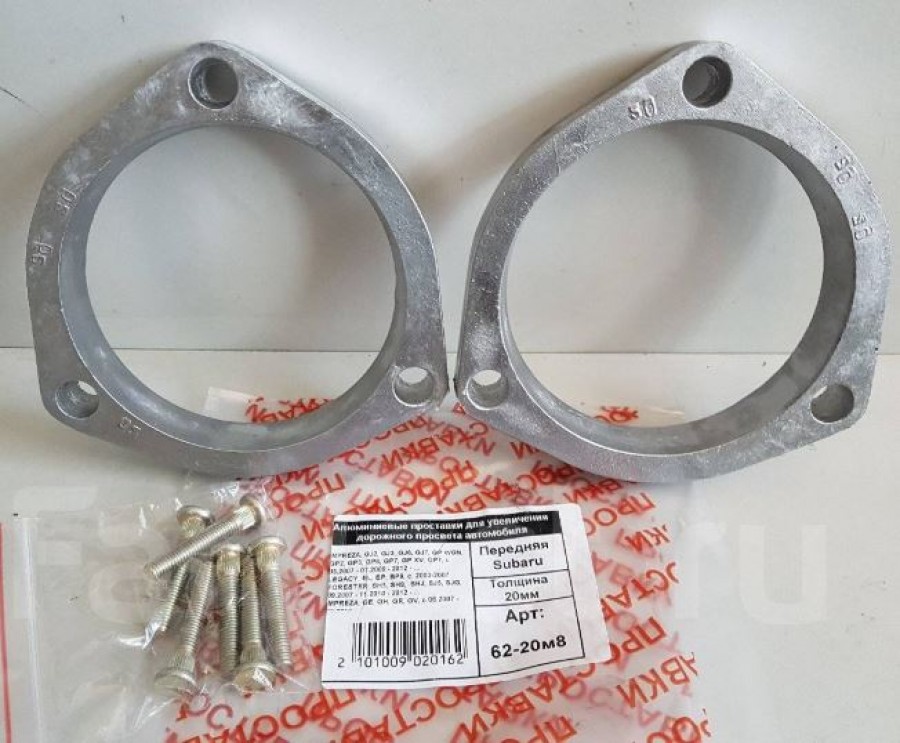 Проставки для увеличения клиренса Subaru 62-20м8 передние, 2 см, комплект 2 шт+крепеж