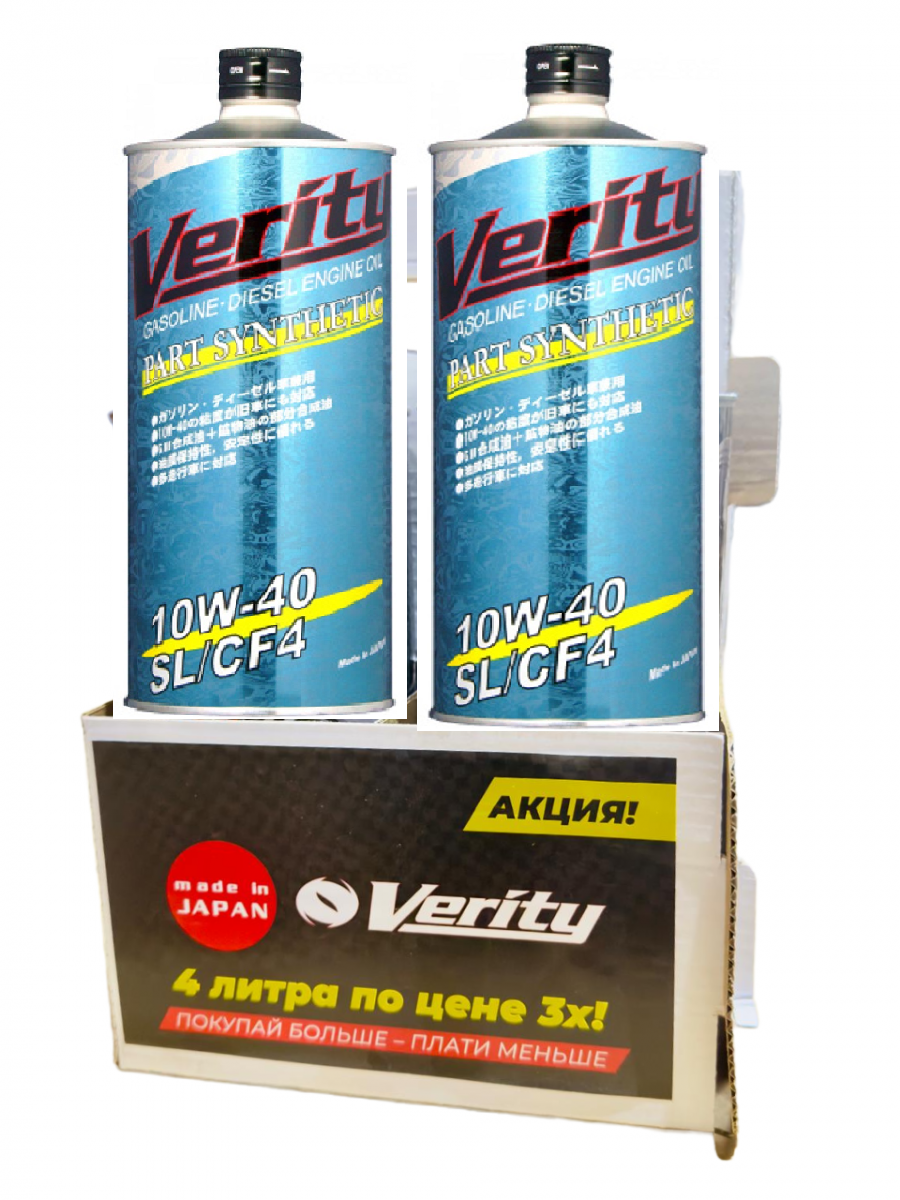 —Промо набор "4 по цене 3-х!" Масло моторное Verity Part Synthetic 10w40 SL/CF4 (1л x 4шт)