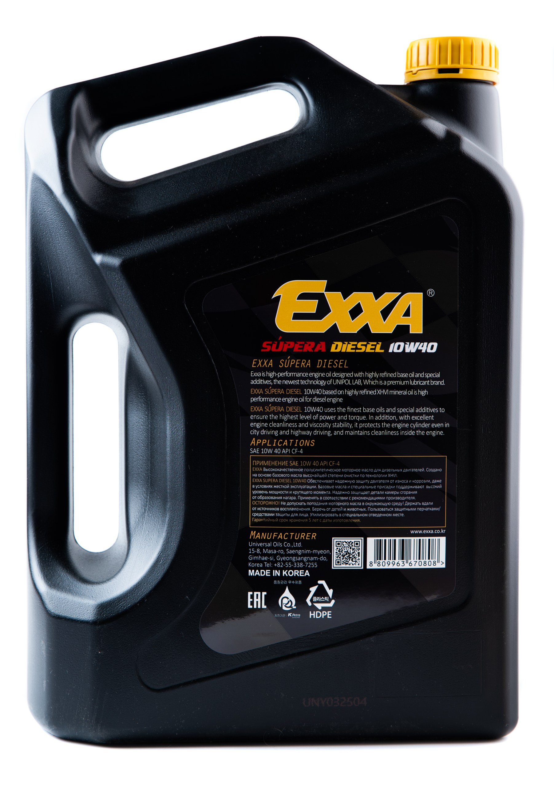 —Масло моторное EXXA SUPERA Diesel 10w40 CF-4 п/синтетическое, 6л. (Ю.Корея)