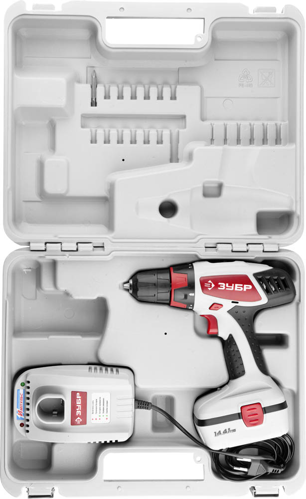 —Дрель-шуруповерт "Мастер" аккум, 0-400/0-1150об/мин, 14,4В в кейсе ЗДА-14,4-2 ЗУБР