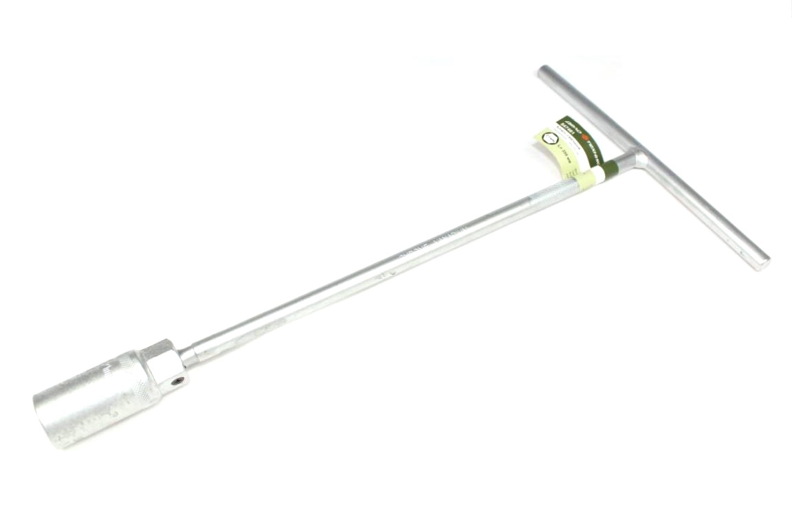 Свечной шарнирный ключ на 21 с магнитом, фиксирующим свечу зажигания.  Шарнирное соединение позволяет использовать свечной ключ в труднодоступных местах. Размер: 21 мм Количество граней: 6 A: 28 мм H: 195 мм Длина: 350 мм