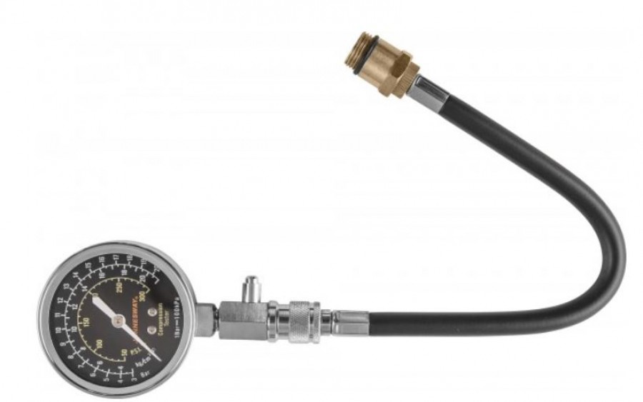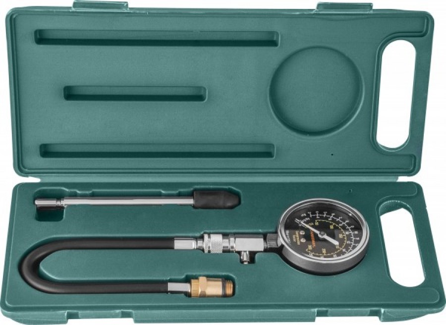Прибор для диагностики работоспособности и обнаружения неисправностей цилиндро-поршневой группы и газораспределительного механизма бензиновых двигателей внутреннего сгорания. Изделие комплектуется 64-миллиметровым манометром, имеющем шкалы градуировки до 21 кгс/см² в различных величинах: psi, Bar, кгс/см², ниппельной насадкой, длиной 150 мм, гибким шлангом, длиной 325 мм с двумя резьбовыми адаптерами для свечных отверстий М14 и М18. Прибор используется для диагностики двигателей с осложненным доступом к свечным отверстиям и двухвальных двигателей, с расположением свечных отверстий в «колодцах».