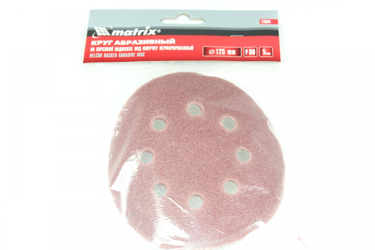 —Круг абразивный на ворсистой подложке под "липучку",перфорированный, Р 80, 125 мм,5шт MATRIX 73804