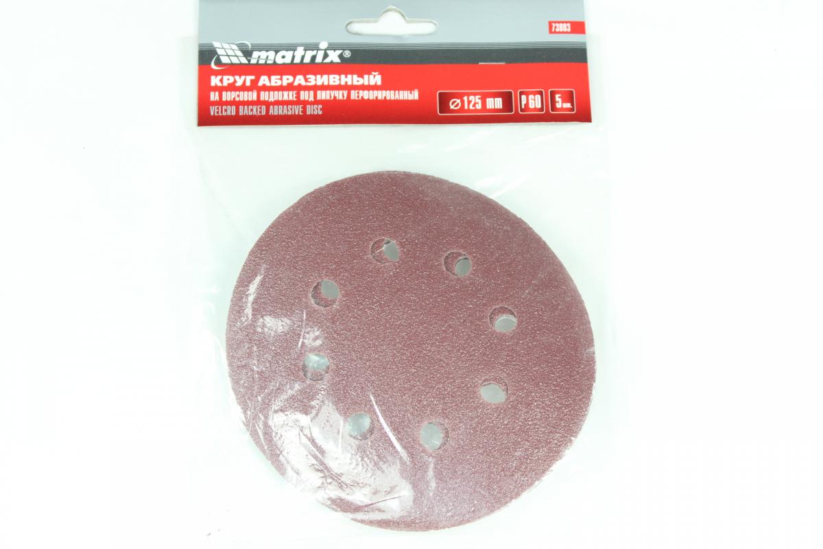 Круг абразивный на ворсовой подложке под "липучку",перфорированный, Р 60, 125 мм,5шт 73803 MATRIX