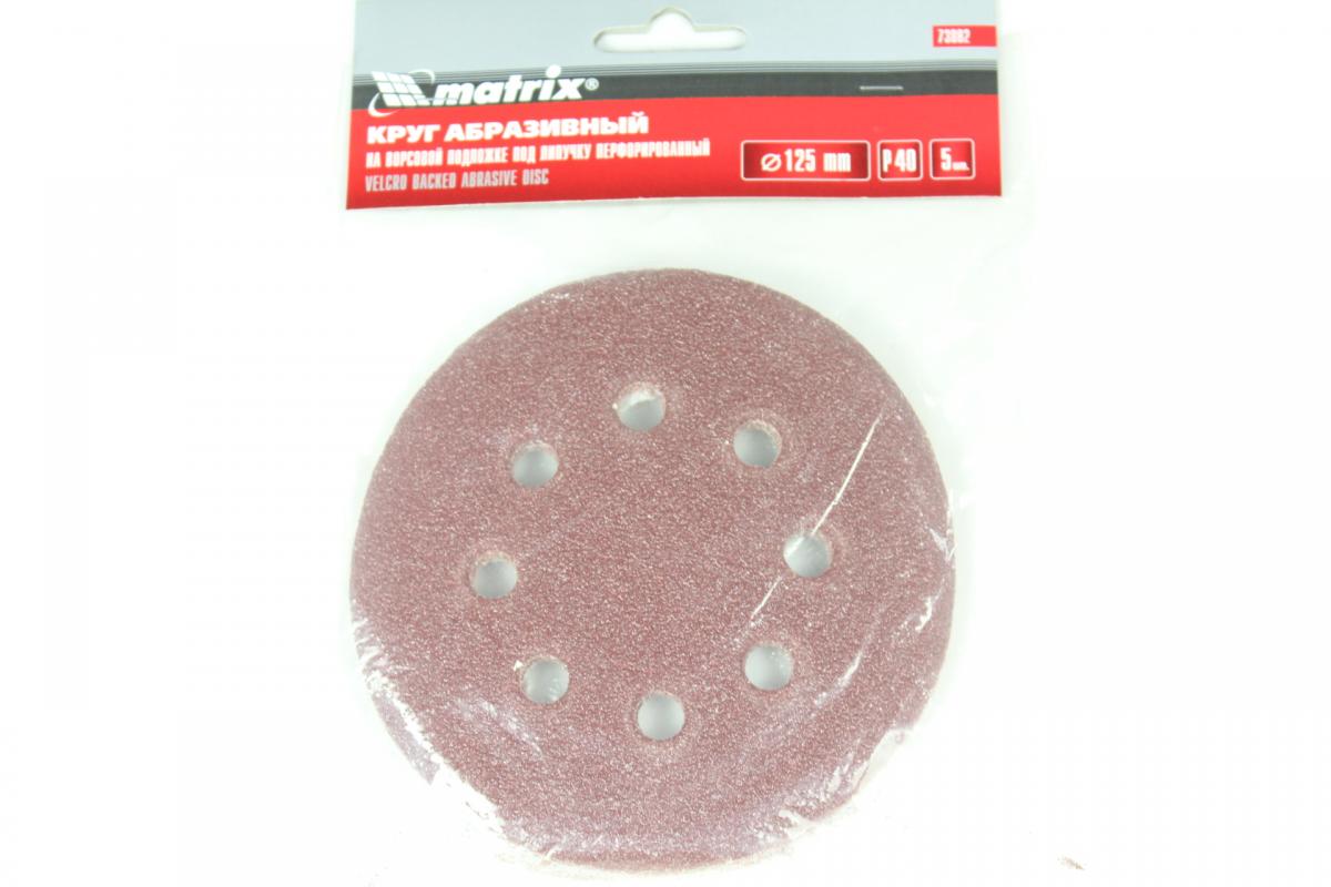 —Круг абразивный на ворсовой подложке под "липучку",перфорированный, Р 40, 125 мм, 5шт MATRIX 73802