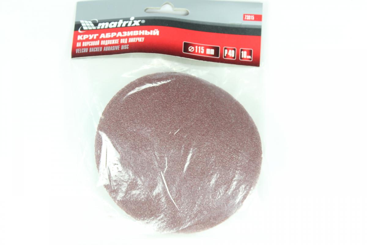—Круг абразивный на ворсовой подложке под "липучку", Р 40, 115 мм,10шт MATRIX 73815