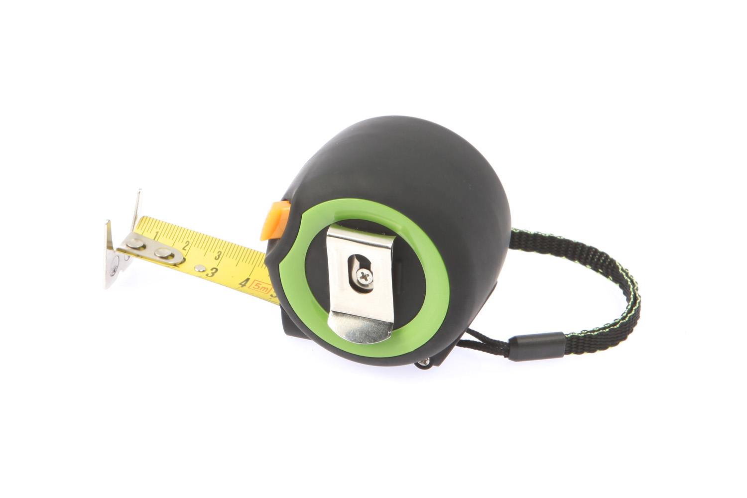 Компактная рулетка в обрезиненном, эргономичном корпусе с автоматическим фиксатором ленты. Двусторонняя двуцветная измерительная лента, с нейлоновым покрытием стойким к истиранию. Подвижный зацеп для точного измерения внутренних и внешних размеров:     1. При измерении от предмета зацеп является нулевой меткой 2. При измерении с захватом предмета зацеп сдвигается, этим компенсируется толщина зацепа, и край измеряемого предмета совпадает с нулевой меткой.