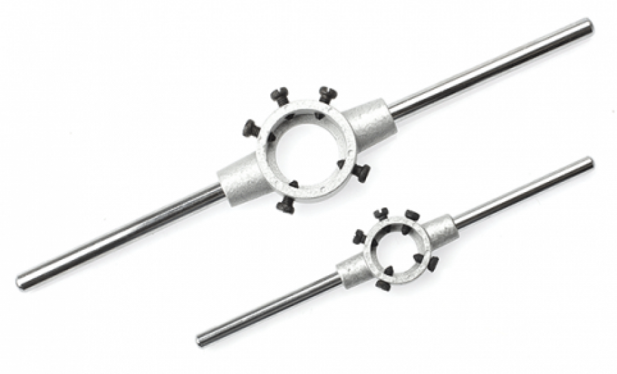 Предназначен для фиксации и вращения плашки при нарезании резьбы. Рассчитан на работу с плашками разного диаметра. Оборудован съёмной рукоятью для удобства хранения.
