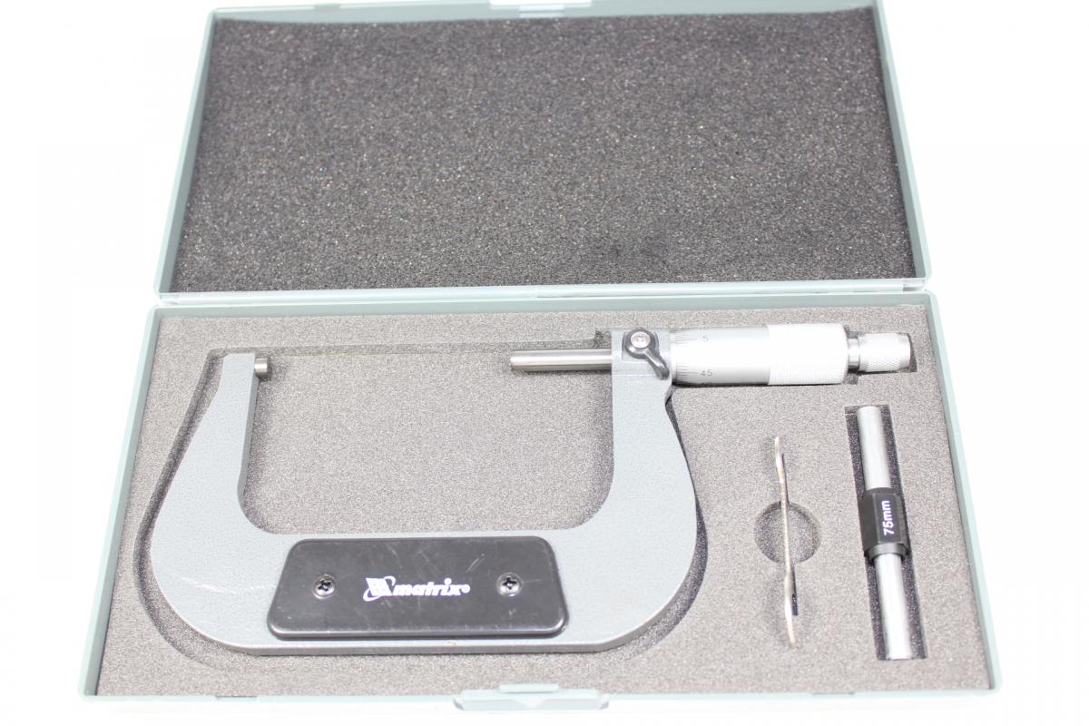 Особенности: Микрометр изготовлен из инструментальной стали. Имеет форму скобы. Основным рабочим элементом является микрометрическая головка. Упакован в пластмассовый кейс. Предназначен для особо точных измерений. Характеристики: Погрешност: ±0,004 мм Диапазон измерения: 75-100 мм Шаг измерения: 0.01 мм Исполнение: механический