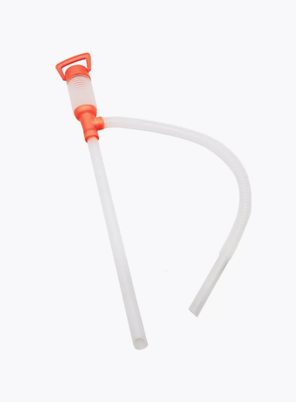 Ручной насос помпа для перекачки топлива. При нажатии на механическую помпу создается давление, которое выталкивает жидкость через трубку и перекачивает его в канистру, бензобак или другой резервуар.