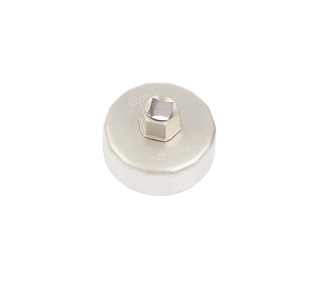 Съёмник масляного фильтра выполнен в форме «чашки», что позволяет снизить вероятность повреждения фильтра при установке и снятии.  Также съёмник даёт возможность устанавливать масляные фильтры при помощи динамометрического ключа, соблюдая технические требования автопроизводителей.   Привод: внутренний профиль 1/2’’; наружный шестигранник 21 мм. Размер: 65-64 мм.  Грани: 14  Марка автомобиля: Toyota, Nissan, Honda, Gelly.