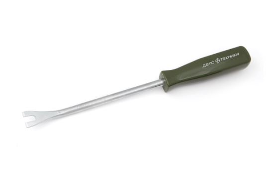 Съёмник применяется для демонтажа пластиковых пистонов обшивки дверей и панелей автомобиля. Инструмент оснащён удобной пластиковой рукояткой. Завести инструмент под край дверной панели, вставить в крепление и затем поддеть.