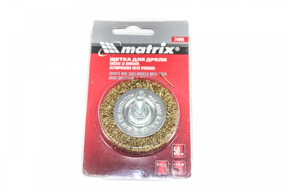 Щетка для дрели, 50мм,плоская со шпилькой,латунир.витая проволока MATRIX 74444