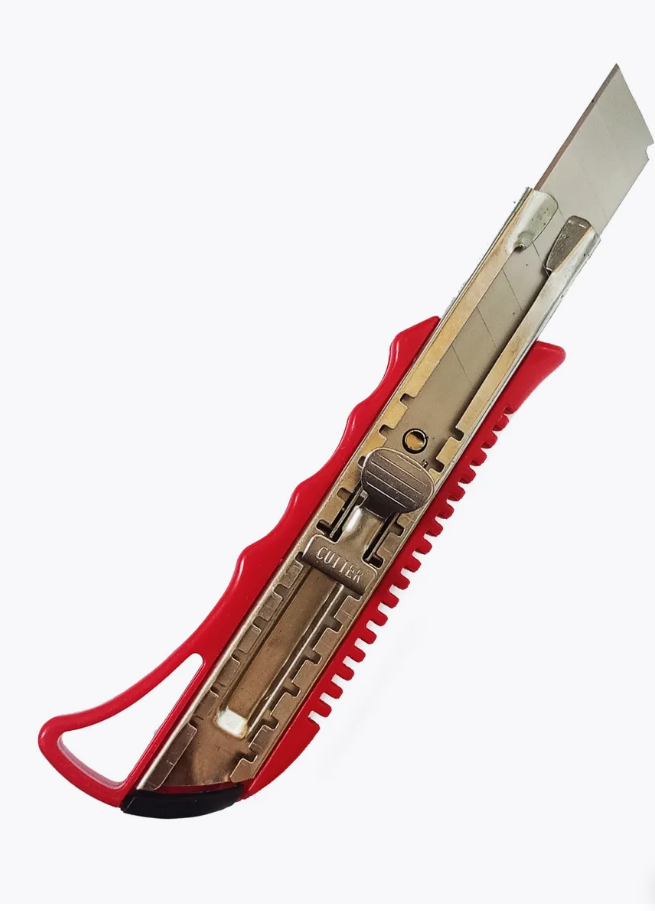 Нож строительный пластиковая рукоять с металлическим фиксатором (лезвие 18мм) PK004
