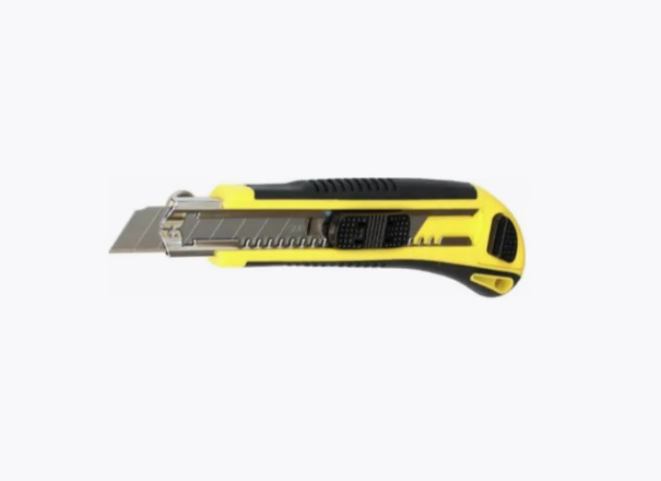Нож строительный пластик/резиновая рукоять с фиксатором (+ 2 сменных лезвия 18мм) PK002