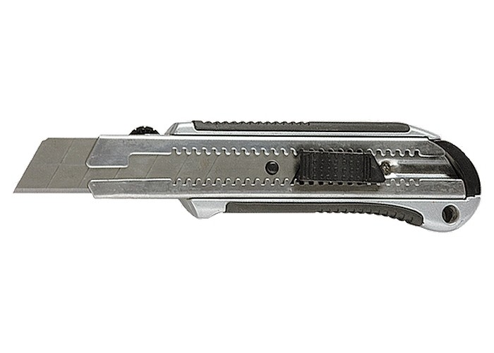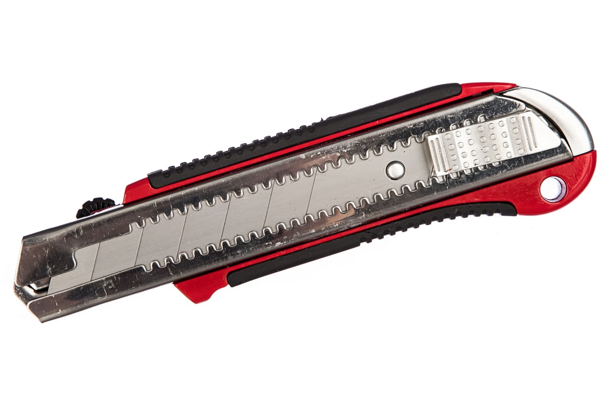Предназначен для разрезания бумаги, картона и прочих материалов с применением значительных усилий. Металлический эргономичный обрезиненный корпус с усиленной направляющей. Нож имеет автоматическую фиксацию лезвия. Замена лезвия осуществляется вручную через хвостовую часть ножа. Основные характеристики: Длина лезвия 125 мм Материал лезвия HCS Форма лезвия сегментированное Ширина лезвия 25 мм Материал рукоятки металл Обрезиненная рукоять да Тип выдвижной Длина 190мм Параметры упаковки: Длина в упаковке 250мм Ширина в упаковке 90мм Высота в упаковке 30мм Внешний вид может отличаться от фото!
