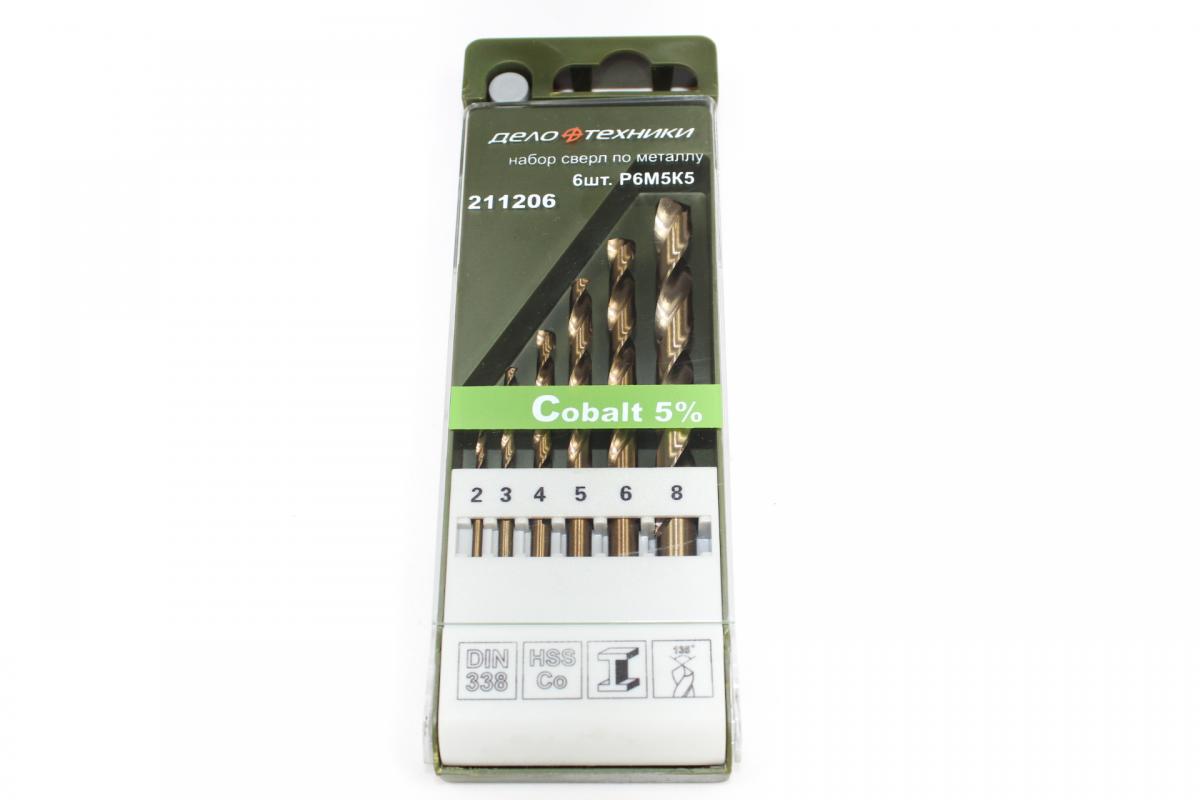 —Набор свёрл по металлу Р6М5К5,6 шт.(2,3,4,5,6,8 мм.) 211206 ДЕЛО ТЕХНИКИ