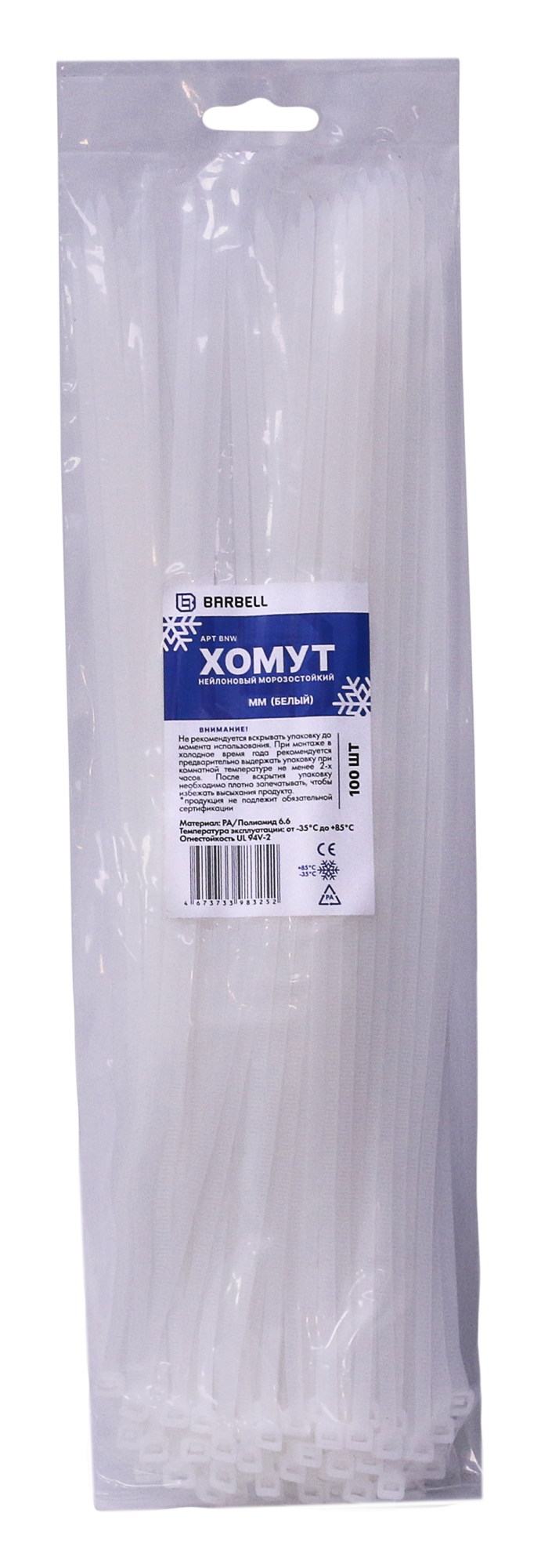 —Хомут нейлоновый морозостойкий 100шт 3,6мм-300мм белый BARBELL BNW-036-300-W100