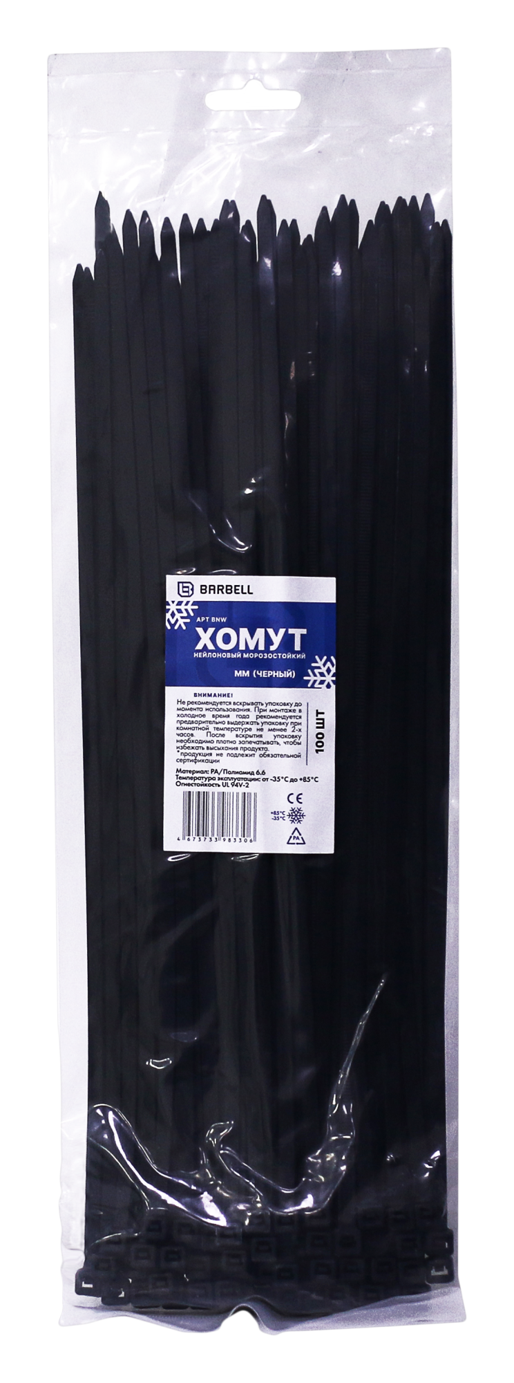 Хомут нейлоновый морозостойкий 100шт 3,6мм-150мм черный BARBELL BNW-036-150-B100 №18