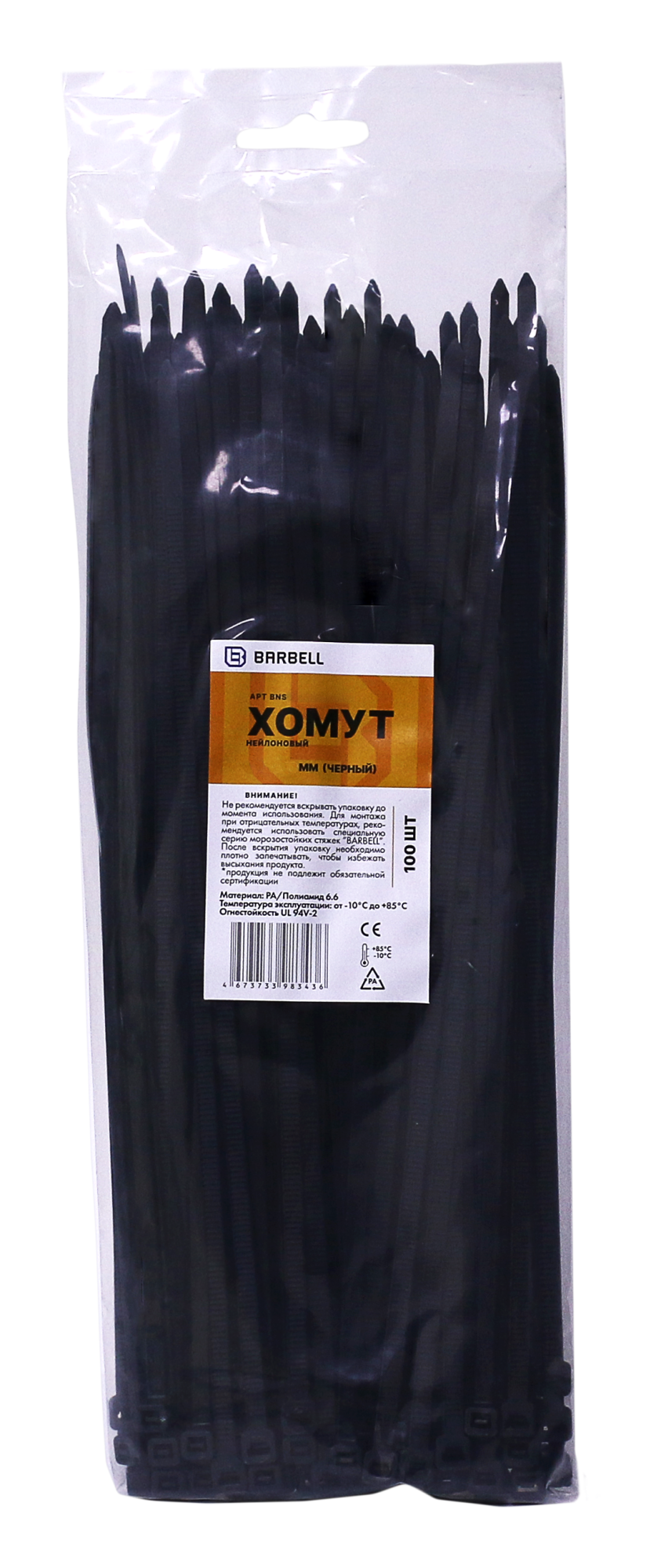 —Хомут нейлоновый 100шт 3,6мм-250мм черный BARBELL BNS-036-250-B100