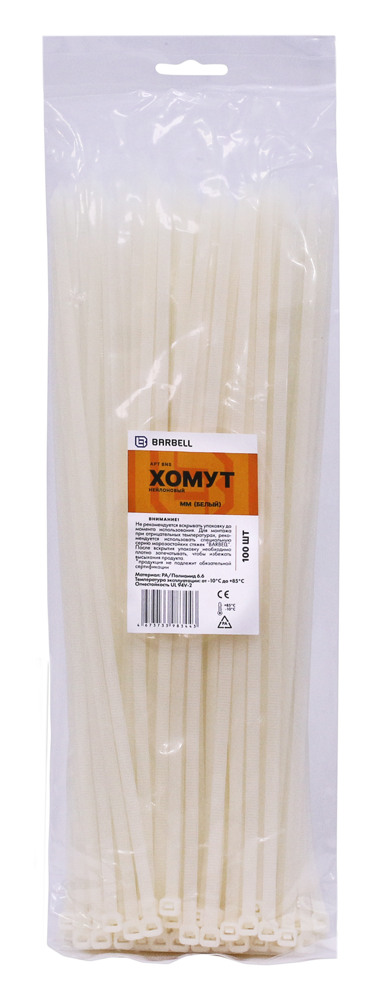 —Хомут нейлоновый 100шт 2,5мм-200мм белый BARBELL BNS-025-200-W100