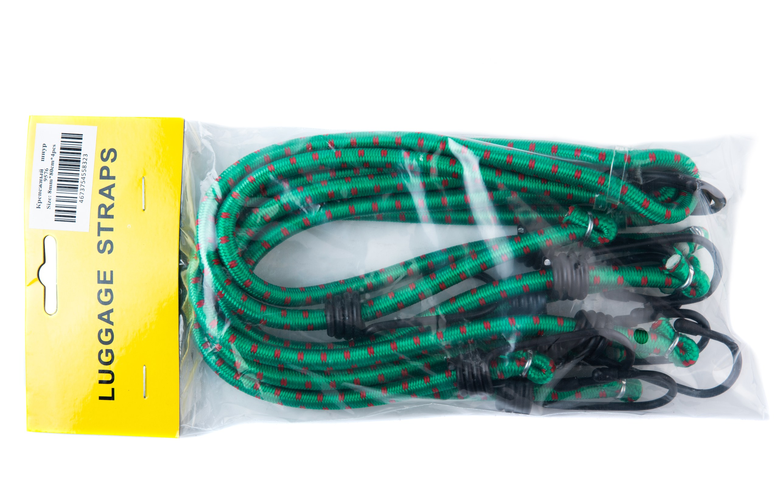—Крепежный шнур резиновый со стальными крюками 4шт. (8мм*80см) 9576