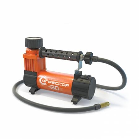 Цельнометаллический корпус компрессора устойчив к коррозии и эффективно охлаждается во время работы. Поршень двигателя оснащён уплотнительным кольцом из гибкого жаропрочного тефлона, которое обеспечивает продолжительную безотказную работу насоса. Для смазки в компрессоре используется инновационное силиконовое масло. Оно сохраняет свои качества в течение всего срока службы изделия и не требует замены или доливки. Питание компрессора осуществляется от прикуривателя автомобиля. Без перерыва компрессор способен проработать до 30 минут.Поршень с уплотнительным кольцом сделан из гибкого жаропрочного тефлона. AGR-30 — это компактный автомобильный компрессор в металлическом корпусе. Производительность в 30 л/мин будет отличным решением для владельца легкового автомобиля  с диаметром шин R14 / R13 и меньше. На компрессоры серии предоставляет 3 года гарантии. Комплектация: — Набор переходников для накачивания велосипедных шин, мячей, матрацев — Инструкция по эксплуатации — Сумка для хранения