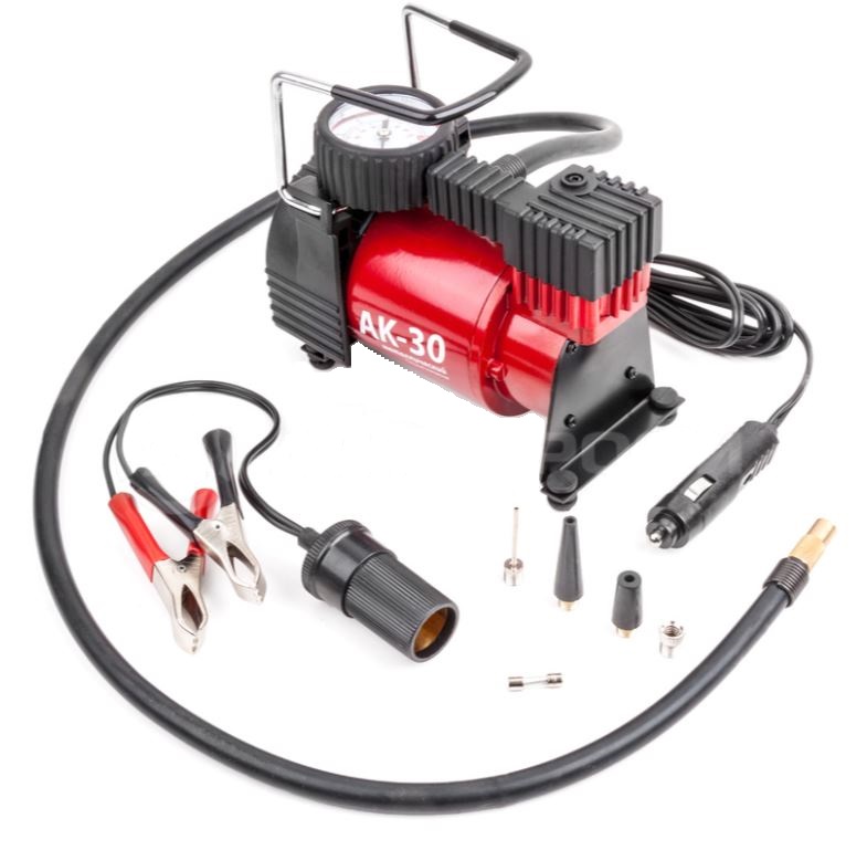 Компрессор АК-35 — это компактный автомобильный компрессор с поршневым насосом и встроенным манометром. Отличный вариант для легкового автомобиля малого и среднего класса с диаметром шин до R14. Особенности: 1. Корпус компрессора изготовлен из устойчивого к коррозии металла, что повышает эффективность охлаждения изделия во время накачивания. 2. Поршень двигателя оснащён уплотнительным кольцом из гибкого жаропрочного тефлона 3. Для смазки в компрессоре используется специальное силиконовое масло,  не требует замены или доливки. 4. Два режима электропитания: от бортовой сети (прикуриватель) или клемм АКБ (переходник в комплекте). 5. Встроенный предохранитель защищает электродвигатель от перепадов напряжения и силы тока. 6. Без перерыва компрессор способен проработать до 20 минут. 3 года гарантии. 7. Производительность — 30 л/мин, а максимальное давление 7 атм. 8. Длина шланга 1м; длина кабеля питания 3м; диаметр поршня30 мм; максимальный ток потребления 14А.