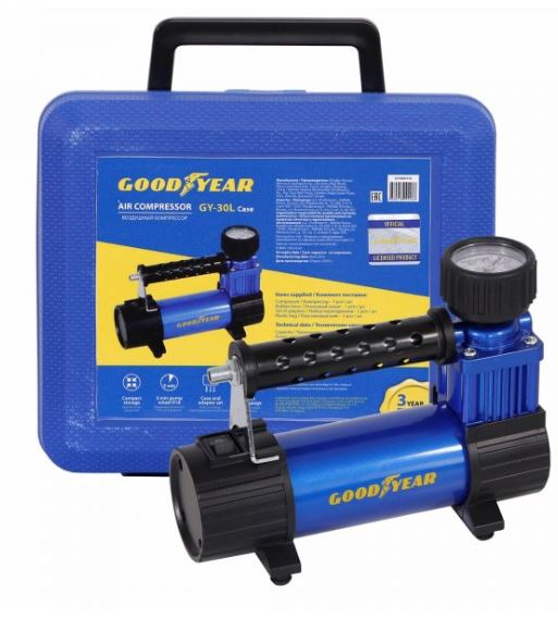 —Компрессор Goodyear GY-30L CASE 30 л/мин, съемный резиновый шланг, кейс для хранения GY000114
