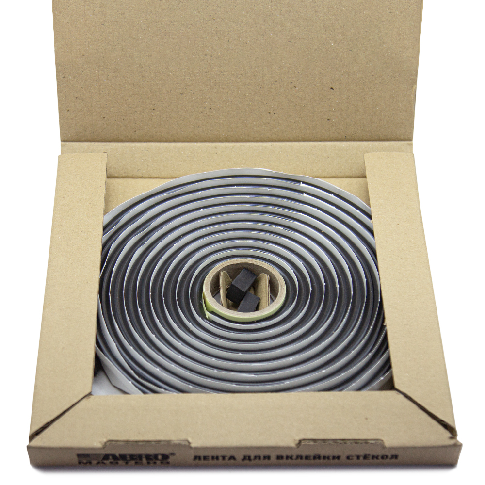 Описание: самоклеящаяся лента из вулканизированного полиизобутилена. Сфера применения: предназначена для вклейки лобового, боковых стекол и ремонта фар. Свойства: • удобная форма обеспечивает легкую установку стекол; • обладает отличной адгезией ко всем поверхностям; • не растекается, не пачкает руки и прилегающие поверхности; • удобна и экономна в использовании; • нерастворима в ацетоне и этаноле; • хорошо совместима с алюминием, стеклом, гальванизированной сталью; • гибкая и эластичная; • сохраняет свойств при любых температурах; • устойчива к старению, погодным условиям и УФ-излучению; • обладает нулевой летучестью, следовательно, безопасна для человека и природы; • стабильна и надежна в использовании; • размер: 9.5 мм x 4,6 м. Применение: 1. При снятом лобовом стекле удалите остатки предыдущей ленты, герметика. 2. В освободившийся паз равномерно уложите ленту, предварительно освободив от бумажной основы. Для равномерного прилегания ленты в пазе проведите вдоль ленты формирователем с легким нажимом. 3. Осуществляйте движение одновременно двумя формирователями в противоположных направлениях. Обрежьте не поместившиеся в паз излишки ленты. 4. Наложите лобовое стекло и прижмите к ленте по всей длине. 5. Сверху по стеклу закройте место склейки декоративной накладкой. Оставшиеся части ленты могут быть использованы для герметизации стыков стекол и корпуса автомобиля.