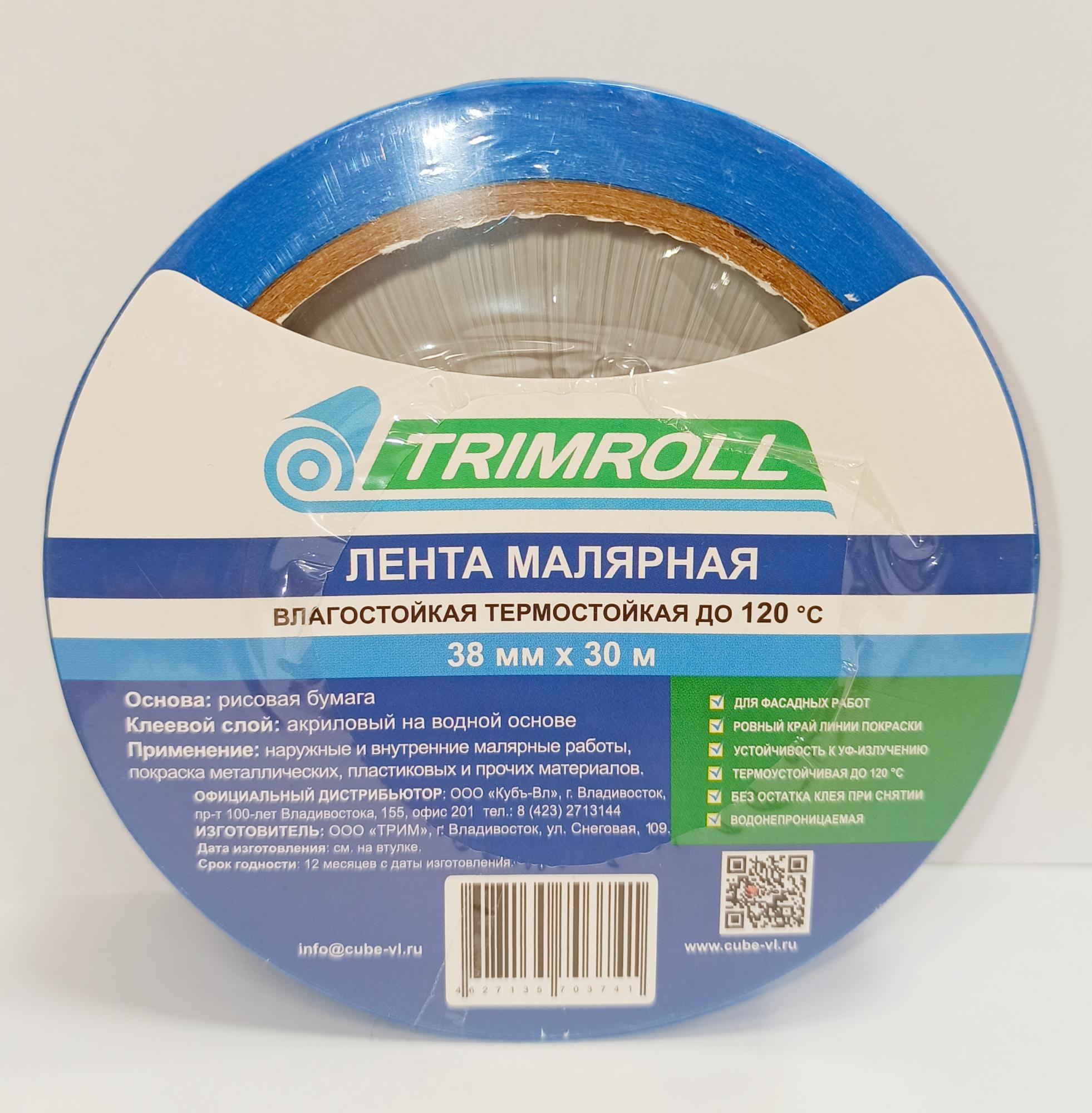 Лента малярная влаго- и термостойкая до 120 °С. Характеристики: Для фасадных работ Ровный край линии покраски Устойчивость к УФ-излучению термоустойчивая до 120 °С Без остатка клея при снятии Водонепроницаемая Параметры: Ширина: 38мм Длина: 30м Основа (материал): рисовая бумага. Клеевой слой: акриловый на водной основе. Применение: наружные и внутренние малярные работы, покраска металлических, пластиковых и прочих материалов. Изготовитель: ООО "ТРИМ"
